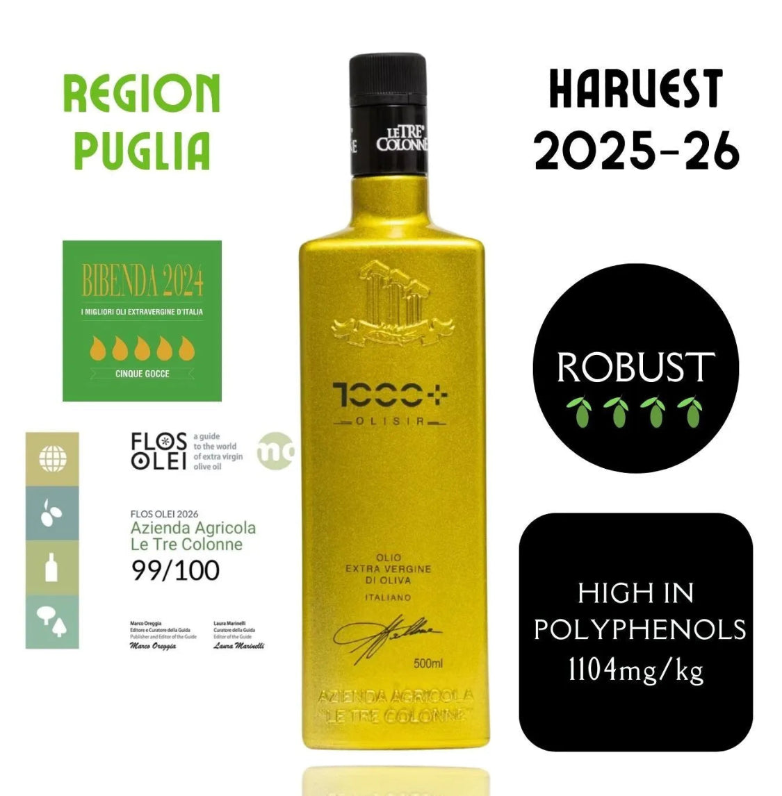 🫒 Le Tre Colonne Olisir 1000+ är inte bara en olivolja – det är ett kraftfullt uttryck av terroir, tradition och hälsa i varje droppe.